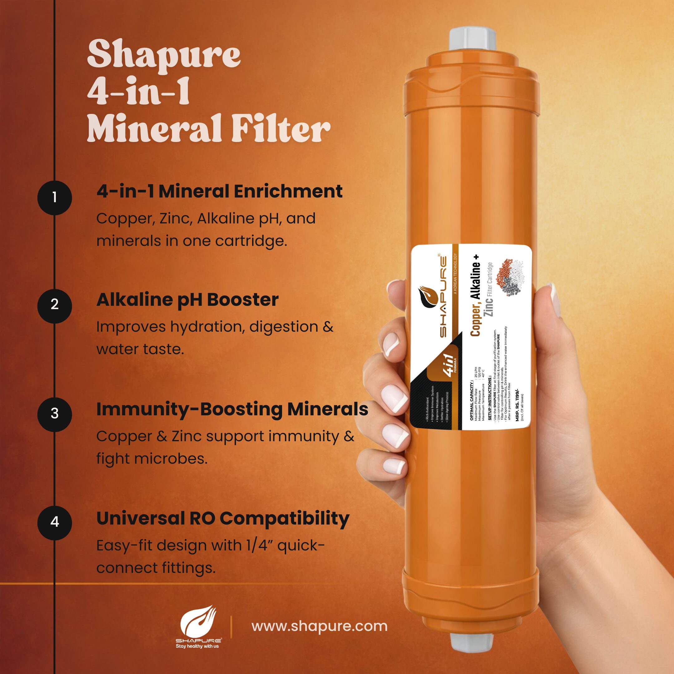 ENHANCED TASTE & PURITY – Copper and carbon filters boost water quality, improving taste and mineral balance.